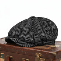 A structured newsboy cap with a bold herringbone pattern, this piece blends traditional texture with reliable comfort. Designed for cool weather wear, it keeps your look polished and practical.
